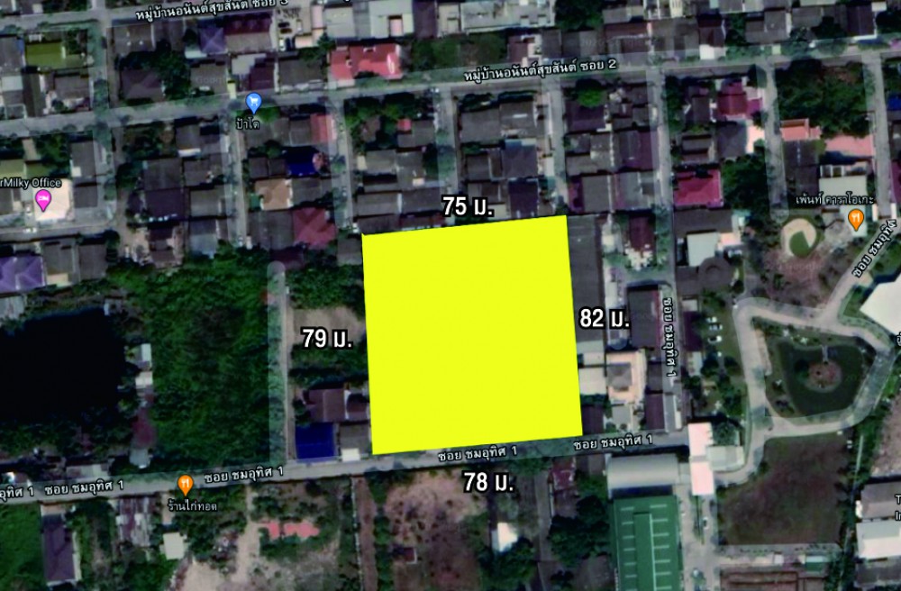 - หน้ากว้าง 77 เมตร ลึก 82 เมตร, พื้นที่สวย ทำเลดี