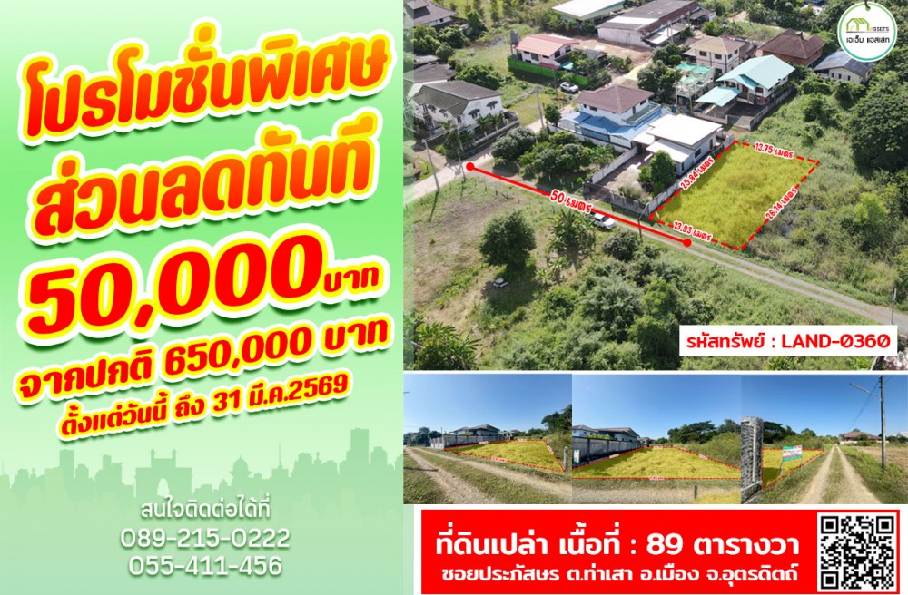 #รายละเอียด : ที่ดินเปล่า รูปแปลงสี่เหลี่ยมสวยๆ หน้ากว้างติดถนน(ทางดิน) ทำเลดี ในแหล่งชุมชน ใกล้ตัวเมืองอุตรดิตถ์ ใกล้สิ่งอำนวยความสะดวกต่างๆ เช่น โลตัสอุตรดิตถ์,การไฟฟ้าภูมิภาคอุตรดิตถ์,โรงเรียนอนุบาลอุตรดิตถ์2,โรงเรียนเซนเมรี่อุตรดิตถ์,ตลาดนัคคลองถม,ตลาดนัดแม่บุญมา,สหกรณ์ออมทรัพยย์ครูอุตรดิตถ์,ปั๊มน้ำมัน,โรงแรม,รีสอร์ท,ธนาคารต่างๆ,ร้านค้า,ร้านอาหาร และอื่นๆ ที่ดินสวยทำเลแบบนี้ เหมาะสำหรับสร้างบ้านพักอาศัย,คาเฟ่ หรือจะซื้อเก็บไว้เก็งกำไรในอนาคตก็ได้ครับ ที่แปลงนี้ สาธาราณูประโภค ไฟฟ้า,น้ำประปา,อินเตอร์เน็ตครบๆ เอกสารสิทธิโฉนดครุฑแดง พร้อมโอนได้ทันทีครับ