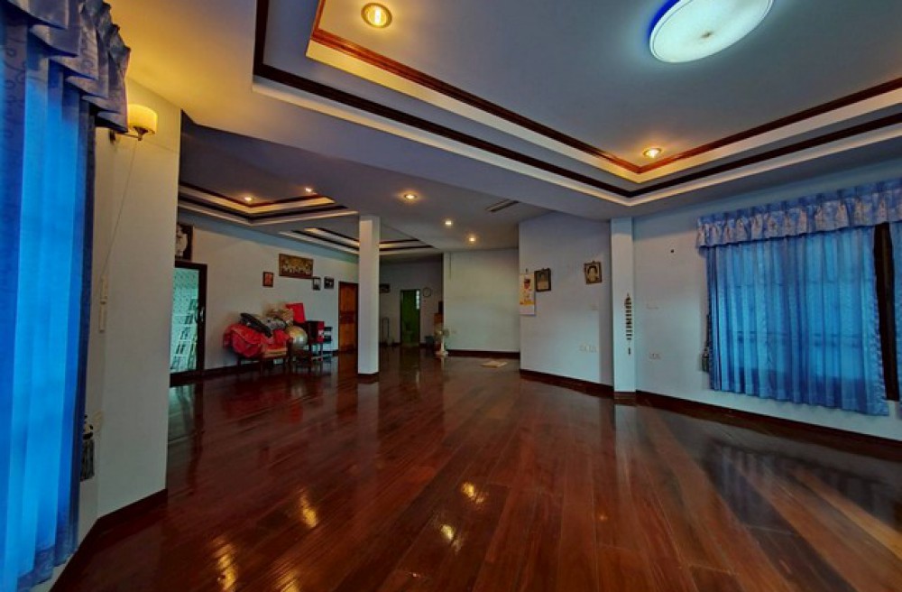 บ้านพร้อมเฟอร์นิเจอร์: 3 ห้องนอน 3 ห้องน้ำ, ห้องรับแขก, ห้องพระ, ห้องครัวใหญ่, โรงจอดรถขนาดใหญ่, ระเบียงด้านหน้า-หลัง
