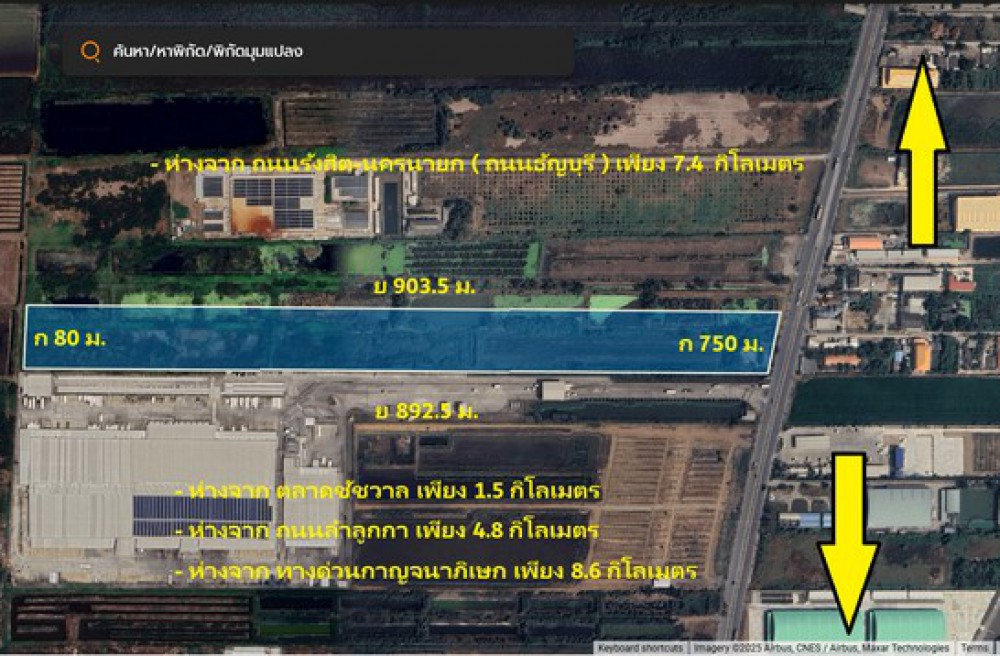 - ก 75 ม. *ด้านหน้า ติดถน7 ลำลูกกา ( ถนน หมายเลข 3004 )
