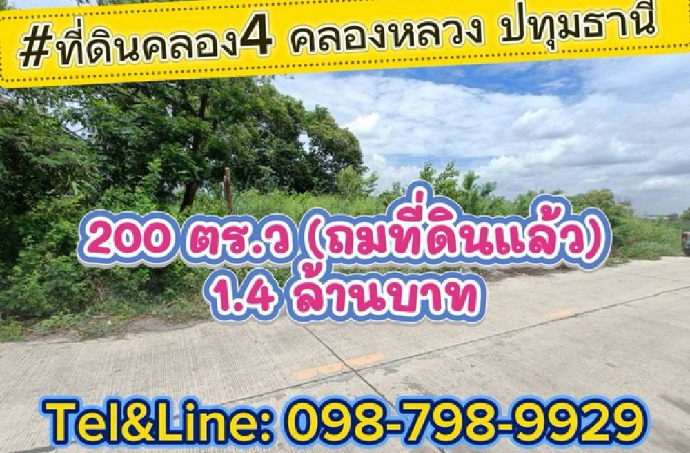 คลองหลวง , จังหวัดปทุมธานี#ที่ดินคลอง4 คลองหลวง ปทุมธานี 200 ตร.ว(ถมที่ดินแล้ว) 1.4 ล้านบาท