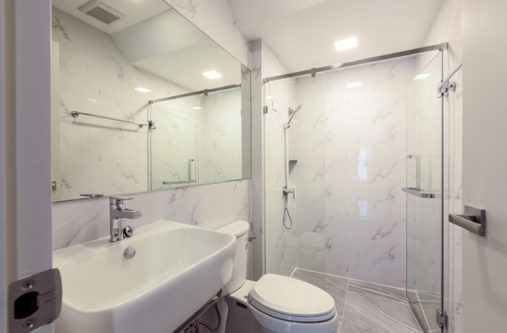 • ห้องน้ําหินอ่อนพร้อมอ่างอาบน้ํา & ฝนฝักบัว