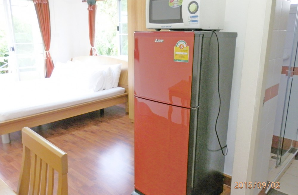 เฟอร์ฯครบ : ตู้เสื้อผ้า เตียง King size, ทีวี, เตาไมโครเวฟ, ตู้เย็น, เครื่องทำน้ำอุ่น, แอร์