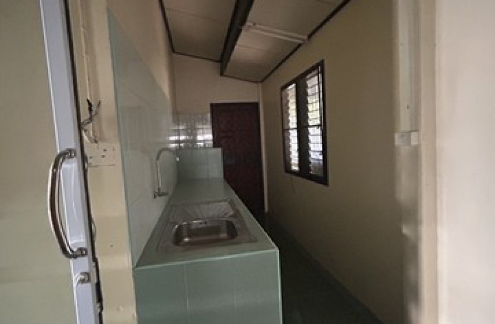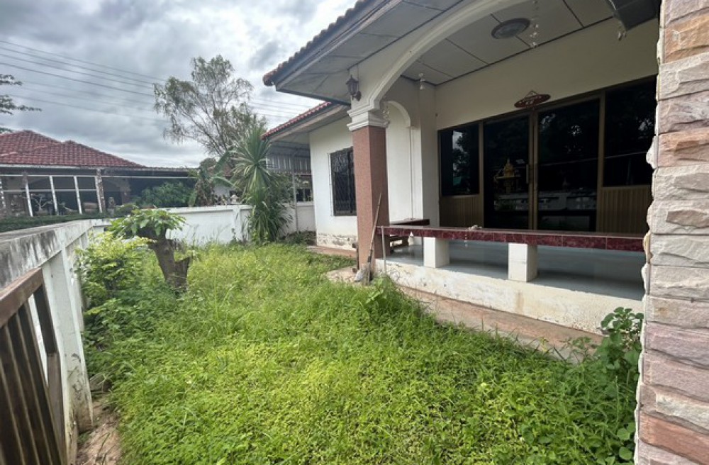 ชั้นเดียว 3 ห้องนอน 2 ห้องน้ำ มิเตอร์ 15 แอมป์ พร้อมแอร์ 1 ห้อง มีครัว โรงจอดรถ บริเวณซัก ตาก และมีพื้นที่ว่างสำหรับปลูกพืชผักและสวนหย่อมขนาดเล็ก ราคา 1.59 ล้าน