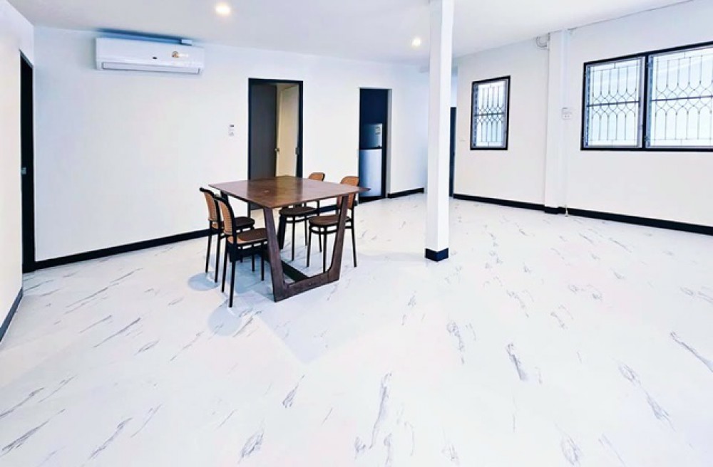 Huai Khwang Fresh Market 800 m. Single-story house for rent 320sq.m MRT HuaiKhwang. 600m.Pracharat Bamphen 2-10 80sq.wa. Regent's Inter Sch 1.9km. Good location easy access to food and transportation. Suitable for living or home office. 4bed 2bath 49-54,999 B-M. from Pracharat Bamphen Road.