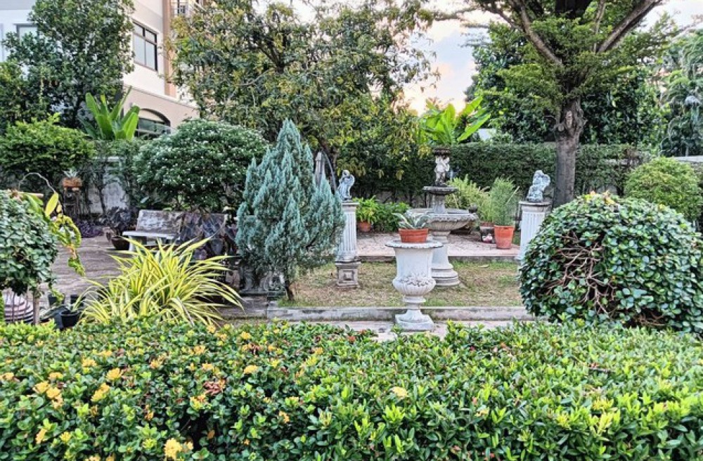 -ชั้นล่าง พื้นปูด้วยกระเบื้อง แบ่งแยกสัดส่วน มี 1 ห้องนั่งเล่นและรับแขก 2 ห้องครัว ครัวนอกและครัวใน 1 ห้องเก็บของ 1 ห้องแม่บ้าน ติดตั้งมุ้งลวด เหล็กดัด ผ้าม่าน แทงค์น้ำ เครื่องกรองน้ำ ปั้มน้ำ แอร์ เครื่องทำน้ำอุ่น