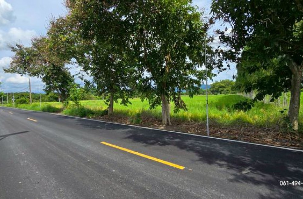 ด้านหน้าติดถนนลาดยาง 2 เลนมีใหล่ทาง ด้านข้างติดถนนสาธารณประโยชน์ กว้างถึง 7 เมตร โรยด้วยหินคลุก