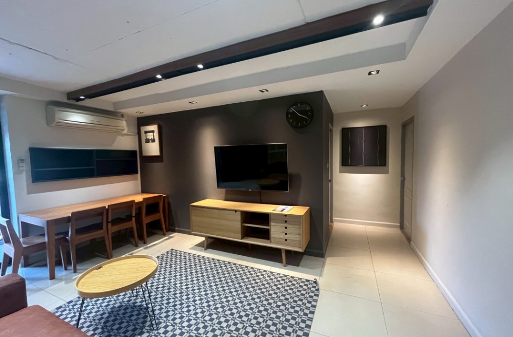 ห้องขนาดกว้าง 63.36 ตร.ม. แบ่งพื้นที่เป็นสัดส่วน 2 ห้องนอน 2 ห้องน้ำ