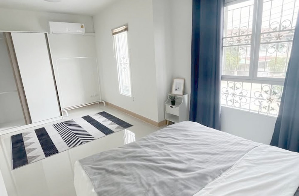 - ห้องนอนใหญ่ built-in ตู้เสื้อผ้า + เตียงเเละที่นอน 5ฟุต