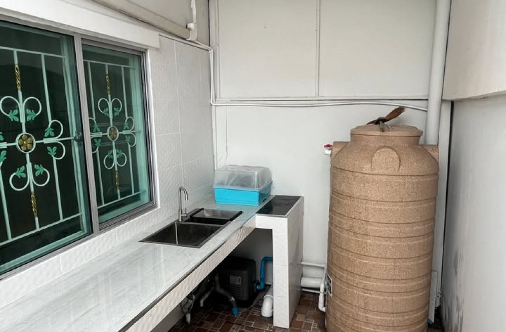 - หลังบ้านมีตัวดูด อากาศ + เครื่องซักผ้า + ตู้เย็น + ปั๊มน้ำและแท๊งน้ำ