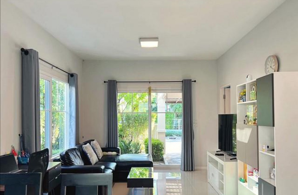 มี 1 ห้องครัวบิวท์อิน ฮูดดูดควัน มีพื้นที่ซักล้างหลังบ้าน อายุบ้าน 5 ปี หันหน้าทิศใต้ จัดสวนปูแผ่น ทำระแนง