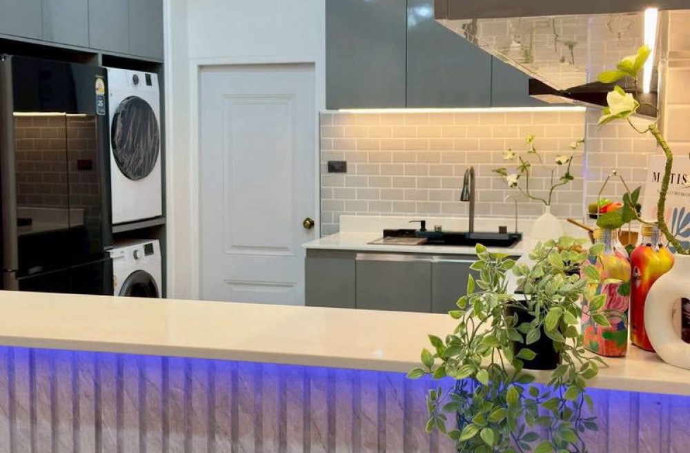รายละเอียดทรัพย์ ที่ดินขนาด 60 ตร.ว. พื้นที่ใช้สอย 272 ตร.ม. 3 ห้องนอน | 3 ห้องน้ำ สระว่ายน้ำระบบเกลือ + น้ำล้น ขนาด 3×5 ม. ลึก 1.5 ม. ตกแต่ง บิวท์อินทั้งหลัง พร้อมเฟอร์นิเจอร์ครบ ม่านสั่งตัดพิเศษทั้งหลัง เครื่องใช้ไฟฟ้าครบชุด ทีวี 4 เครื่อง แอร์ 4 เครื่อง ตู้เย็น / เครื่องซักผ้า / เครื่องอบผ้า