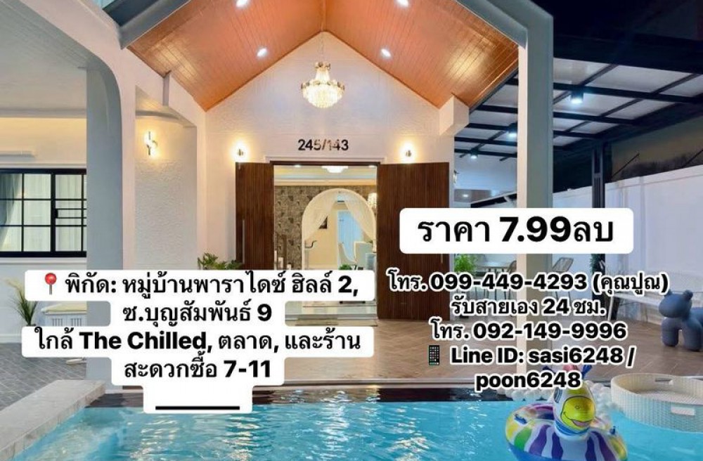 บางละมุง , จังหวัดชลบุรี#บ้านเดี่ยวพร้อมสระว่ายน้ำ – หมู่บ้านพาราไดซ์ ฮิลล์ 2 พัทยา#บ้านเดี่ยวพร้อมสระว่ายน้ำ – หมู่บ้านพาราไดซ์ ฮิลล์ 2 พัทยาบุญสัมพันธ์ ซอย 9 ใกล้ ห้าง The Chilled, ตลาด, และ 7-11 PR:new
