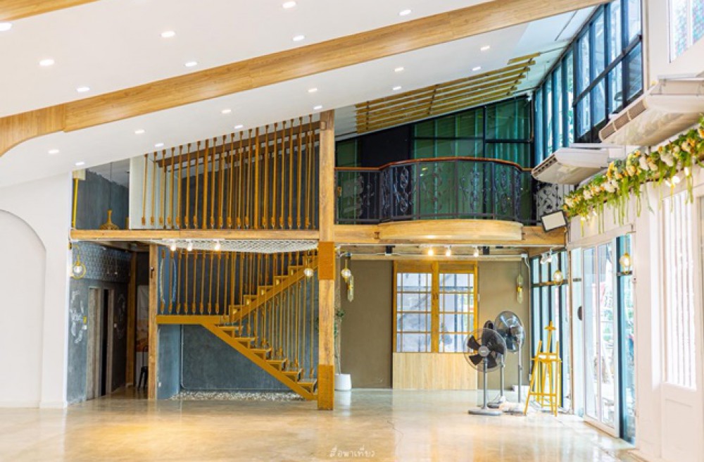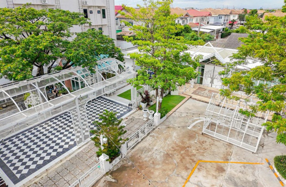Parking for 50 cars with a shady atmosphere sweet and gentle adding to the romance in the ThungKhru area Pracha Uthit-WatKhuSang Rd. near Big C Food Place Bangkok 2-story wedding venue for rent with 3packages over 400sqm of space both outdoor and indoor starting at 24,999baht.