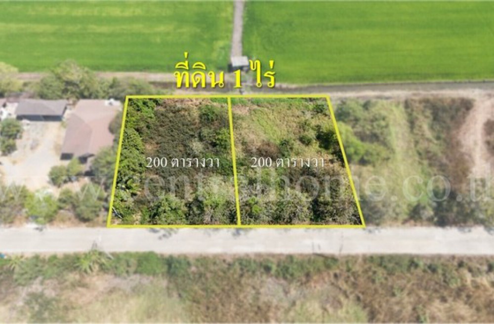 - ที่ดินเปล่า 1 ไร่ แบ่งเป็น 2 แปลงละ/200 ตารางวา