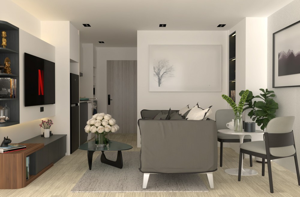 •1 ห้องนอน | 1 ห้องน้ำ | ห้องนั่งเล่น+ครัว | ระเบียงอินดอร์กั้นห้อง