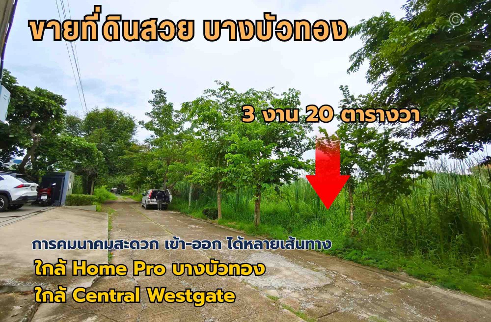 ขายที่ดินสวย บางบัวทอง 3 งาน 20 ตรว. ทำเลดี ถนนวัดลาดปลาดุก ใกล้ เซ็นทรัล เวสต์เกต