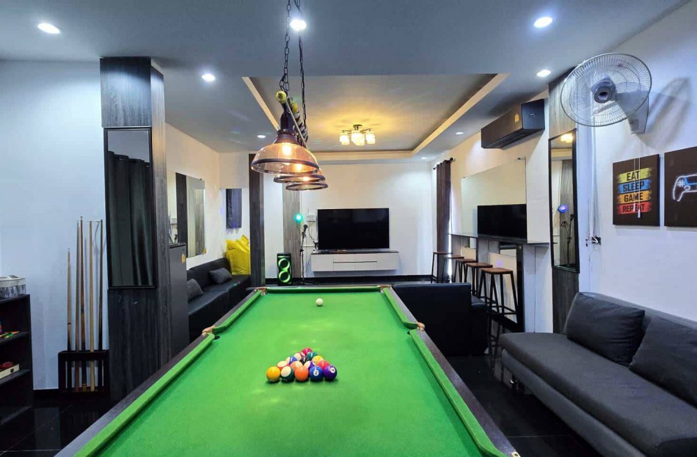 + SmartTV 75 นิ้ว, โต๊ะสนุ๊กเกอร์, ลำโพงบลูทูธ