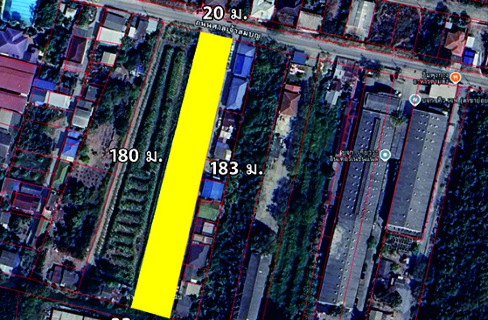 - หน้ากว้างติดถนนศาลเจ้าสมบุญ 20 ม. ลึก 180 ม.
