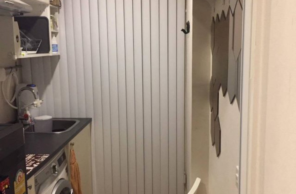 -ครัวบิลท์อิน แอร์ 1 เครื่อง ตู้เสื้อผ้า เตียงนอน ชุดโซฟา ชั้นวางทีวี