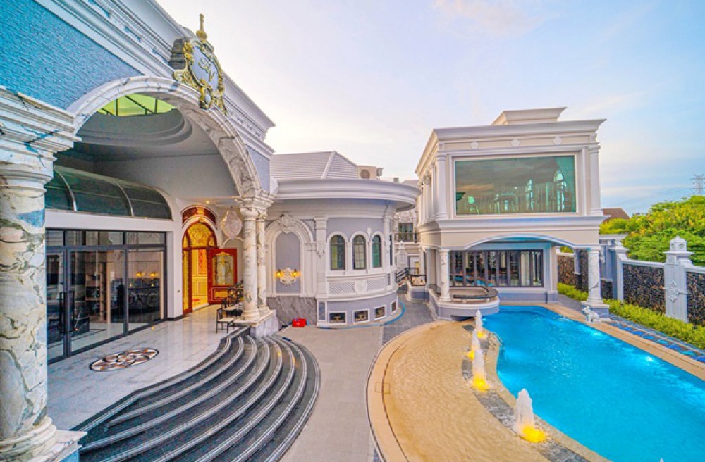 Selling a large 3-story mansion 6bed European style gate luxurious with land 2Rai 72sq.wa. 3002sq.m. Mahidol University Salaya 1.7km. ROISB Inter Sch 3.3km. fully furnished and equipped with electrical appliances Futo Mall 2.1 km. quiet community location suitable for living and doing business 7 bath selling for 249.99 million baht convenient transportation Uthayan intersection Phutthamonthon Sai 3 Road.