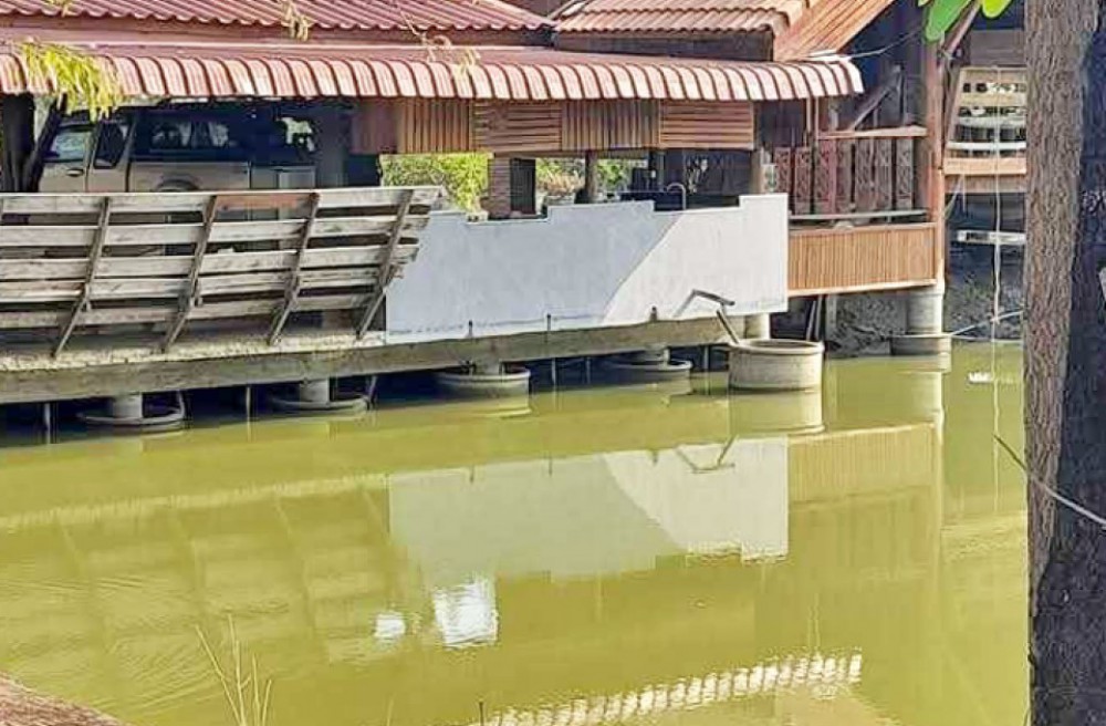 ที่ดินโฉนดครุฑแดง พร้อมบ้าน 3 หลัง สระน้ำ 2 สระ โรงรถ 2 โรง