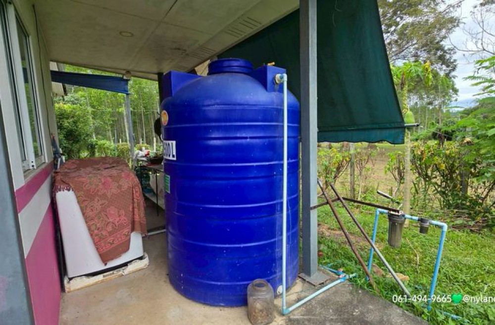 ท้ายแปลงมีบ่อปลา ขนาดประมาณ 2 งาน ลึกประมาณ 2 เมตร เลี้ยงปลารวม ต่อปั๊มน้ำเดินท่อระบบรดน้ำต้นไม้ไว้ทั่วแปลง
