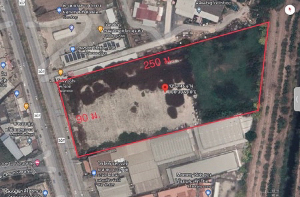 - หน้ากว้าง 90 เมตร ติดถนน 307 บางคูวัด ปทุมธานี ถนนขนาด 8เลน เขตทาง 40เมตร