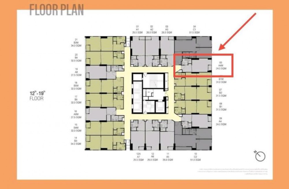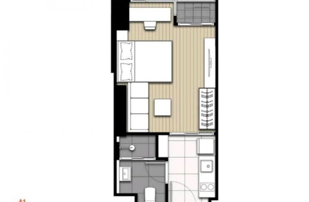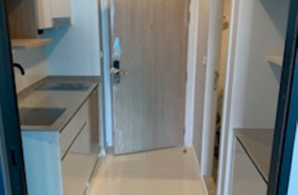 เนื้อที่ 24 ตร.ม.ห้องสตูดิโอ ชั้น 12 A ตำแหน่งห้อง 05 ที่จอดรถสะดวกสบาย ภายในตกแต่งครัวบิลท์อิน แอร์ 1 เครื่อง