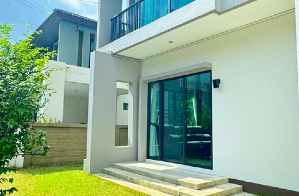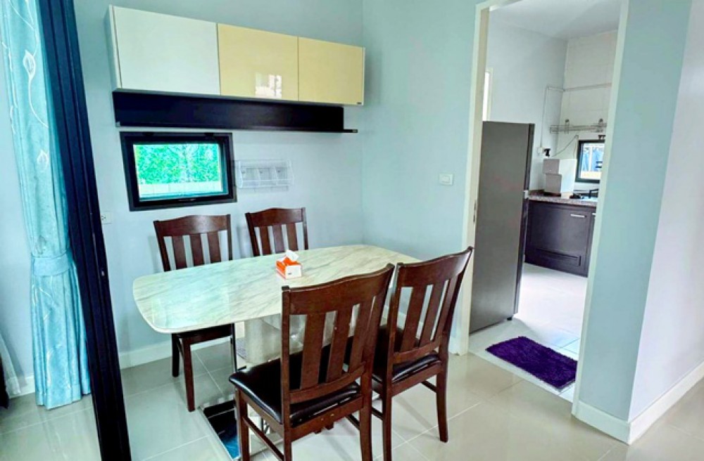 CJ Hathairat39 2.1km. 2-story detached house for rent 55s.wa. 225sq.m. The Legacy Golf Club 3 km. 700m. from Surawong Samwa School. Fully furnished and equipped 28,999 baht/month. 3 bed 3 bath 2 km from Maruey Market Hathairat. Community area convenient transportation. Hathairat Road.