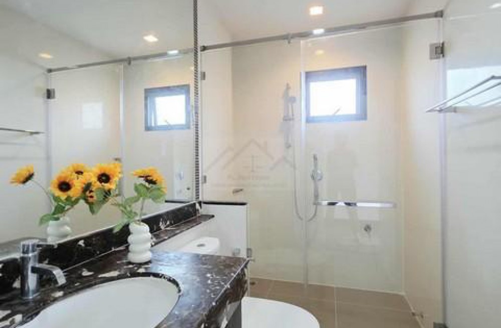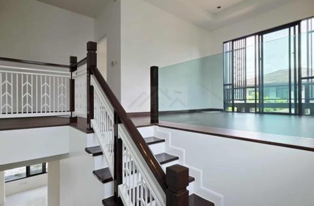 มีห้องอเนกประสงค์ (ชั้นบน) ห้องแม่บ้าน + ห้องน้ำ แยกส่วน ครัวพร้อมฮู้ด เคาน์เตอร์เตรียมอาหาร ประตูรีโมท