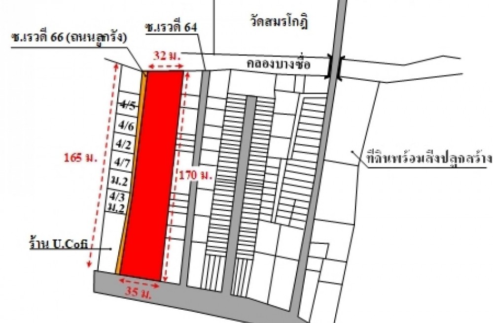 เมืองนนทบุรี , จังหวัดนนทบุรีขาย ที่ดิน ติวานนท์ ติดถนนเรวดี เนื้อที่ 4 ไร่ 44 ตรว ถนนกว้าง