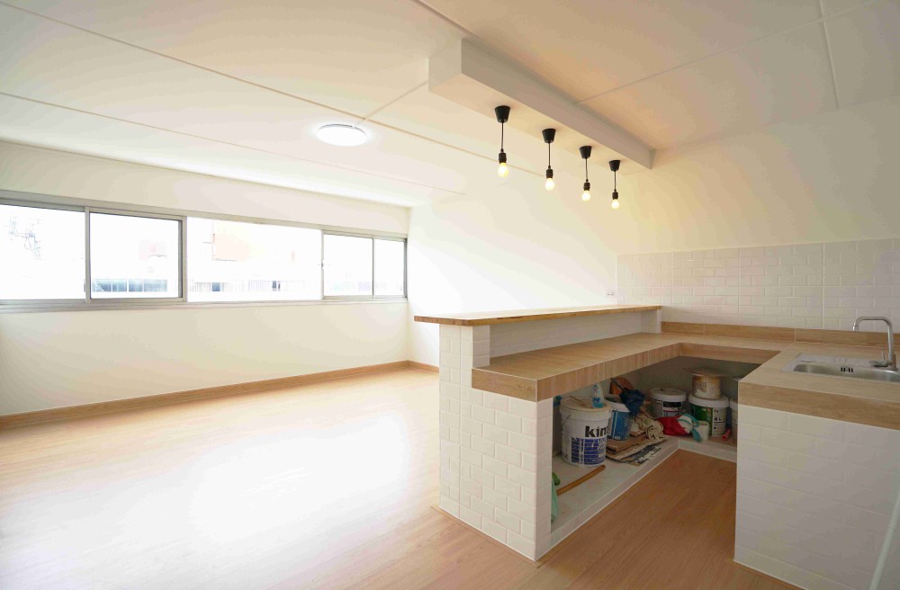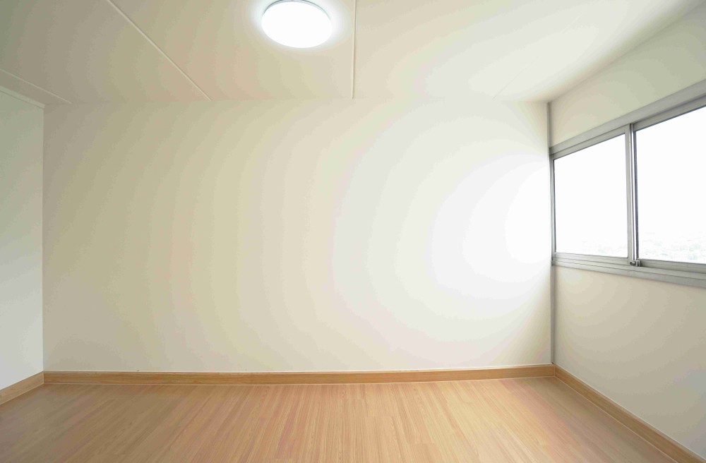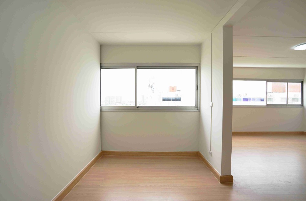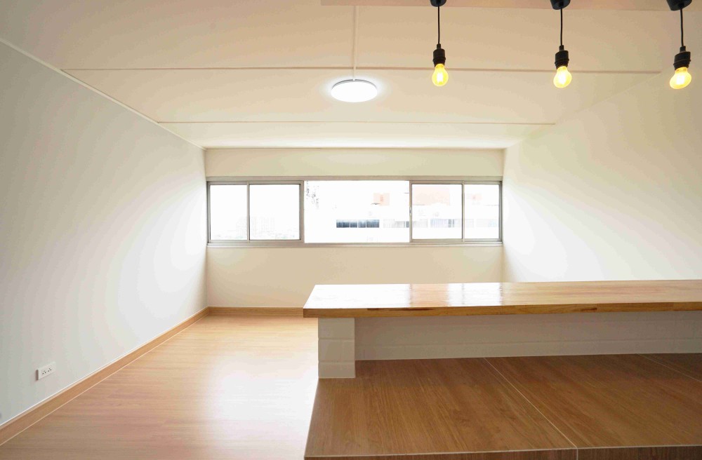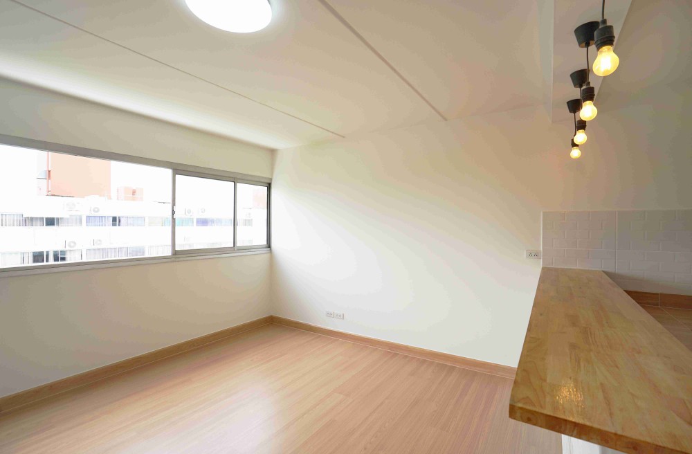 ภายในห้อง ตกแต่งพื้นด้วยลามิเนต โดยเลือกเป็นสีไม้เพื่อให้ความรู้สึกอบอุ่นและเพิ่มความมินิมอล แบ่งห้องนอนออกเป็นสัดส่วน ห้องน้ำตกแต่งปูกระเบื้องใหม่สวยงาม และ Built-in เค้าเตอร์ห้องครัวขนาดพอเหมาะพร้อมใช้งาน