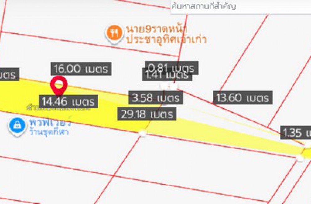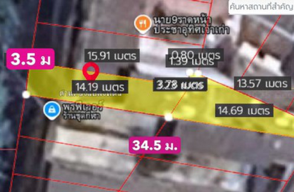 • เนื้อที่ **30 ตร.วา** (หน้ากว้าง 3.5 เมตร ลึก 34.5 เมตร)