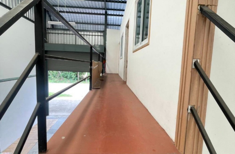 พร้อมแอร์ ชั้นลอยทำเป็นห้องนอน 2 ห้อง มีแอร์ 1 ห้อง ด้านหลังต่อเติมเป็นห้องครัวหรือห้องเก็บของ ประตูเปิดปิดด้วยประตูไฟฟ้า