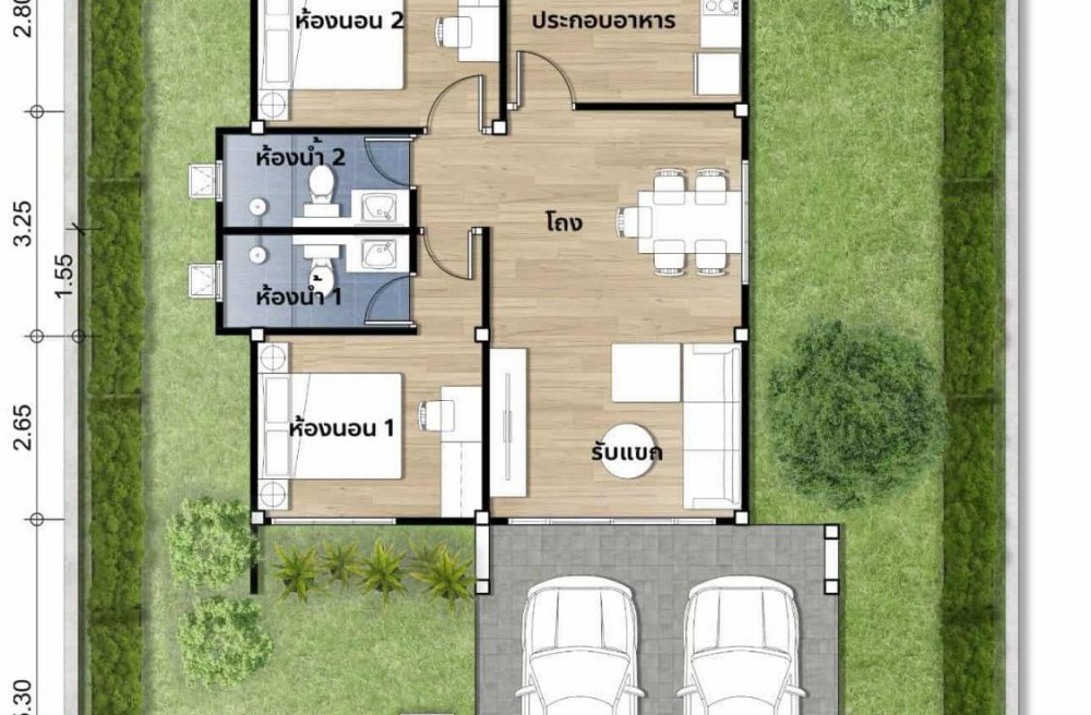 1. แบบบ้าน A : 2 ห้องนอน 2 ห้องน้ำ