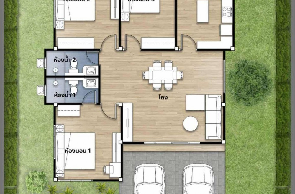 2. แบบบ้าน B : 3 ห้องนอน 2 ห้องน้ำ