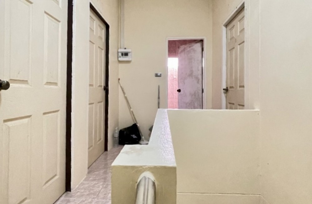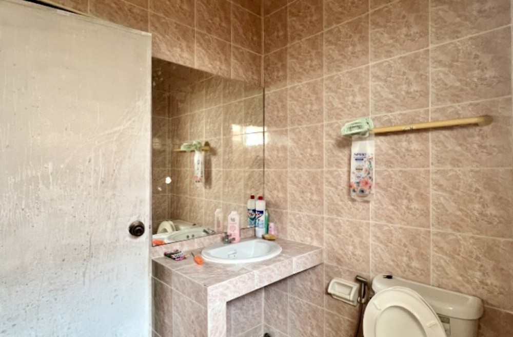 ประตูห้องน้ำด้านล่างใหม่เป็นประตูบานเลื่อน หน้าบ้านไม่ชนกับหลังอื่น