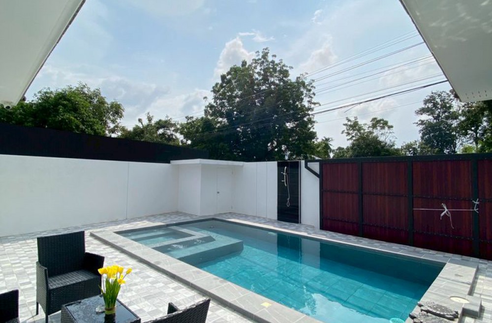 ประตูบ้านอัตโนมัติบ้านเดี่ยวชั้นเดียว 3 ห้องนอน 3 ห้องน้ำ ขนาดพื้นที่ 100 ตารางวาเฟอร์นิเจอร์ครบ พร้อมหิ้วกระเป๋าเข้าอยู่ผ้าม่านเกรด Premium ทั้งหลังBult in สวยหรู ห้องนั่งเล่นและห้องครัว Wifi โซฟาเบด 3 ที่นั่ง เตาฝัง + ฮูดดูดควัน ไมโครเวฟ ทำความสะอาดสระ+ สวน Freeไม่แออัด ส่วนตัว สงบมาก