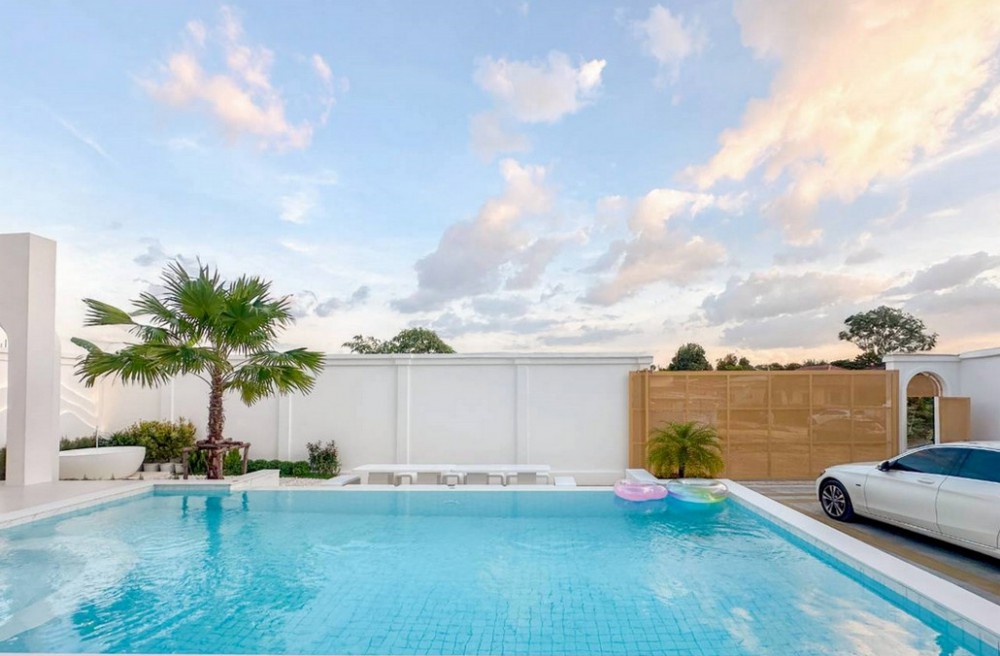 มีสระว่ายน้ำ ระบบเกลือ ขนาด 9×5 เมตร ระบบน้ำล้น พร้อมไฟสระเปลี่ยนสีได้ และระบบจากุชชี่