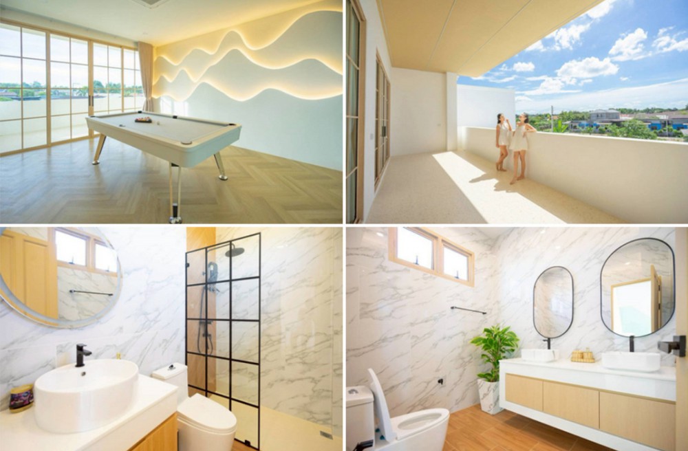 มีครัวไทย ครัวฝรั่ง โต๊ะรับประทานอาหาร โต๊ะพูลขนาด 8 ฟุต อ่างอาบน้ำ ผนังซ่อนไฟ สามารถทำธุรกิจได้ครับ