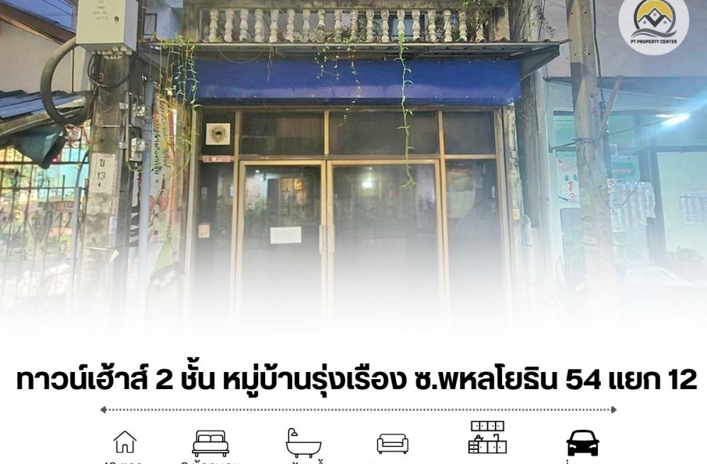 รายละเอียด :• ทาวน์เฮ้าส์ 2 ชั้น• เนื้อที่ 16 ตารางวา พื้นที่ใช้สอย : 100 ตารางเมตร• 2 ห้องนอน 2 ห้องน้ำ 1 ห้องรับแขก 1 ห้องครัว• วัสดุปูพื้น / กระเบื้อง • หน้าหน้าหันทิศ เหนือ• โครงสร้างเสาคานก่ออิฐฉาบผนัง แข็งแรง• ต่อเติมระเบียง หน้าบ้าน (กว้าง 3.8 เมตร x ลึก 5 เมตร) ไม่ทรุด• ต่อเติมห้องครัว ชั้นล่าง (กว้าง 3.8 เมตร x ลึก 2 เมตร)• ขายบ้านเปล่า ตามสภาพ ต่ำกว่าราคาตลาด