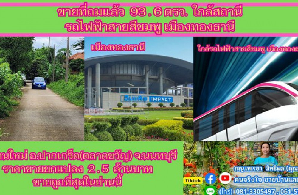 ขายที่ถมแล้ว 93.6 ตรว. ใกล้สถานีรถไฟฟ้าสายสีชมพู เมืองทองธานี ต.บ้านใหม่ อ.ปากเกร็ด(ตลาดขวัญ) จ.นนทบุรี