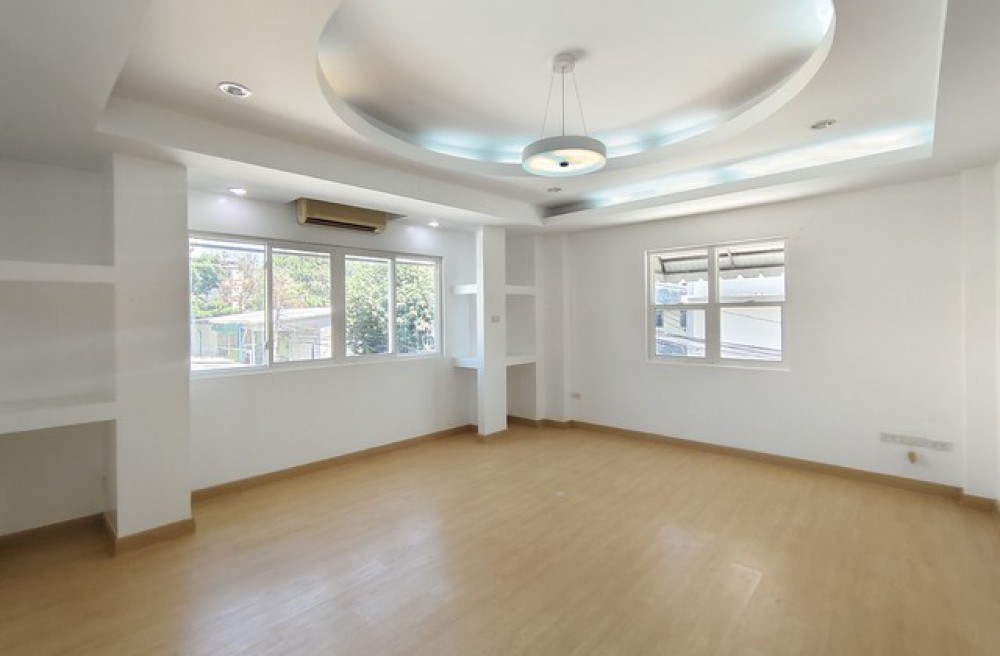 +ชั้นล่าง ห้องโถงใหญ่ ตกแต่งใหม่ ,1 ห้องน้ำ และโซนครัวพร้อมเคาวเตอร์ เชื่อมต่อพื้นที่ด้านข้าง และหลังบ้าน
