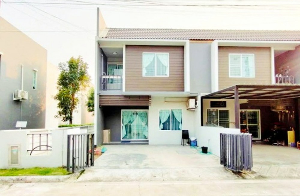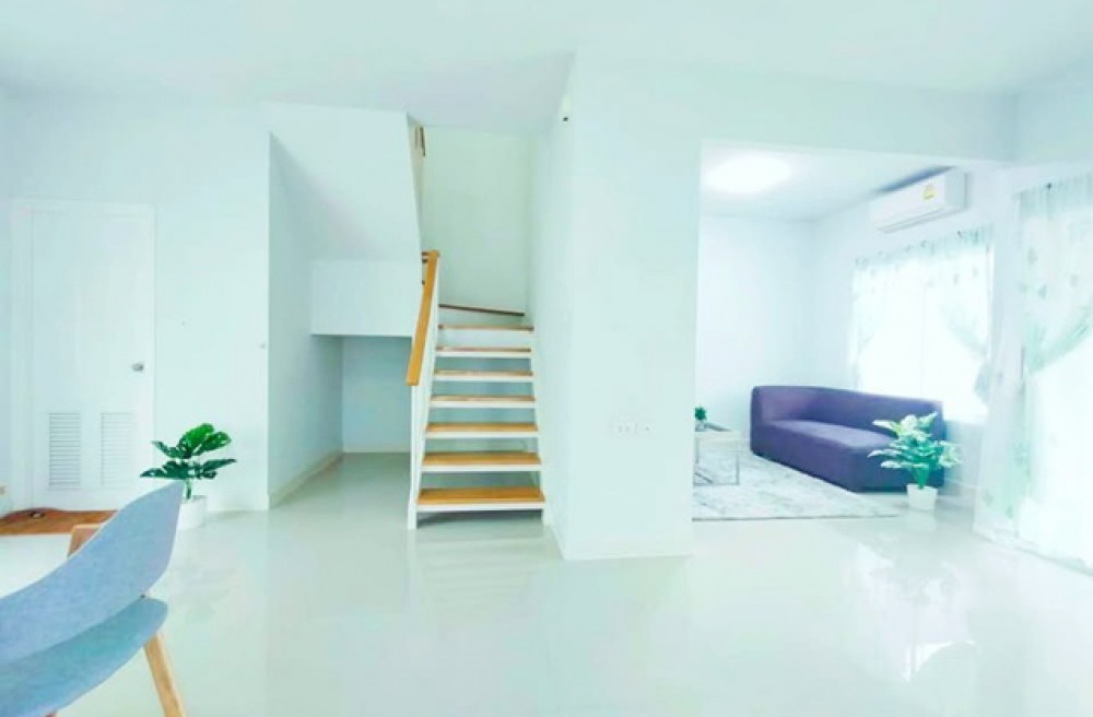 7-Eleven Bang Bua Thong 1km. For sale-rent 2-story townhome corner plot 28sq.wa. 228 sq.m. 3 bed 2 bath Srirat Expressway 340 Ratchaphruek fully furnished electrical appliances 13,999 B-M. Selling for 2.49 million baht. Wat Sam Ngam Bang Bua Thong
