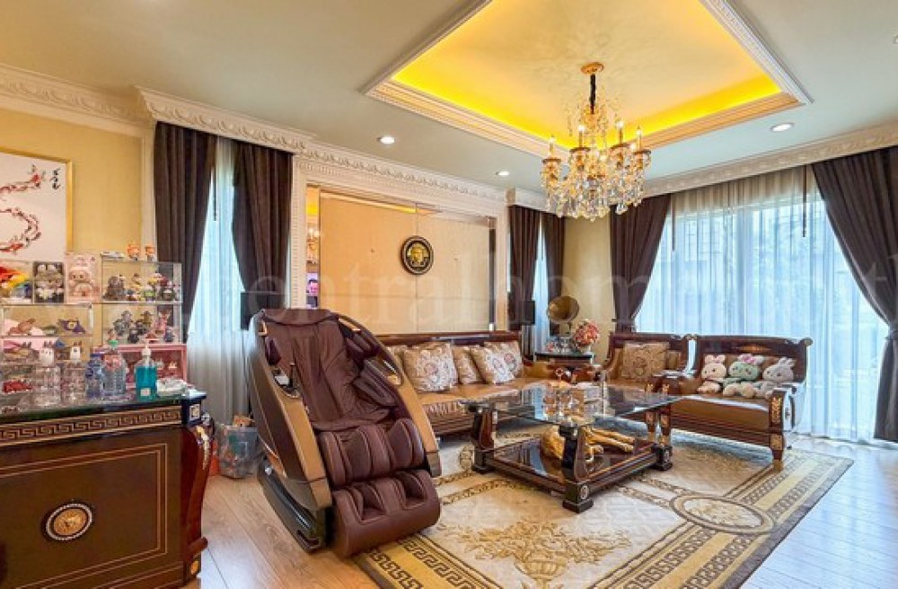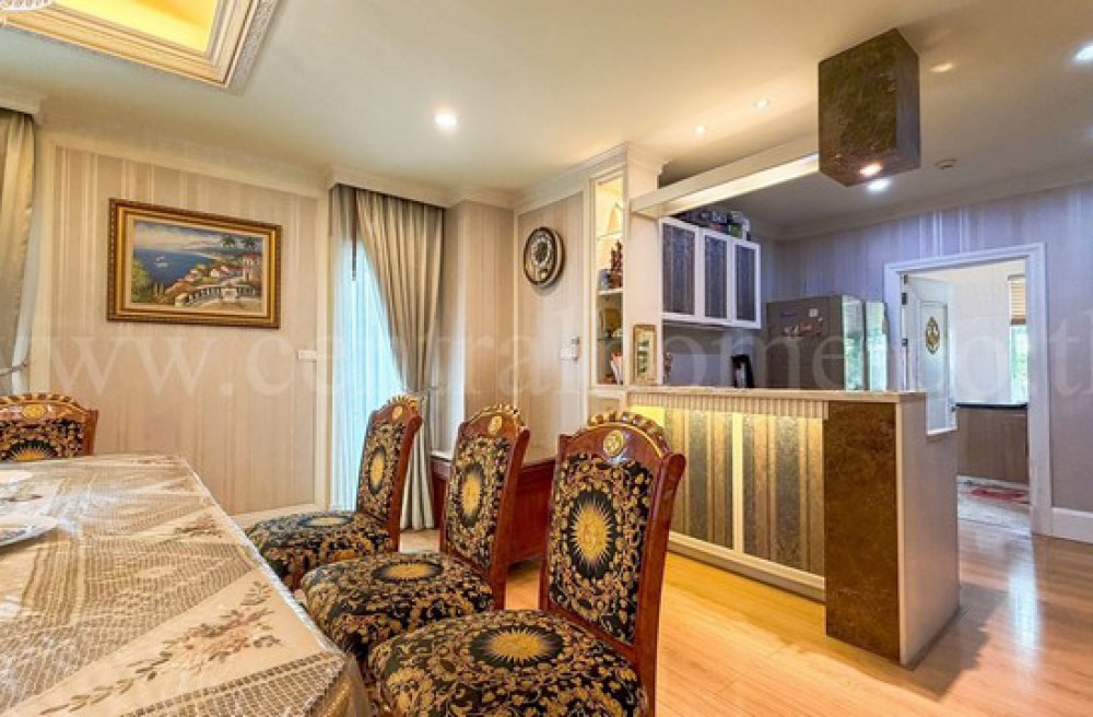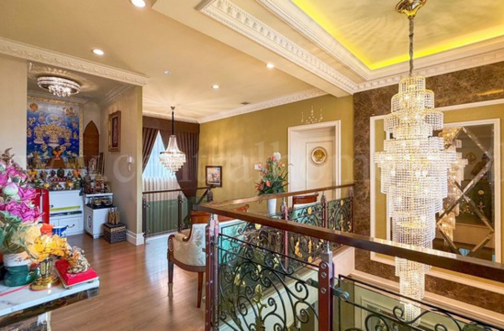 - 4 ห้องนอน, 5 ห้องน้ำ, 1 ห้องรับแขก, 1 ห้องรับประทานอาหาร, 1 ห้องครัวไทย, 1 ห้องครัวฝรั่ง, 1 ห้องแม่บ้าน, 2 ที่จอดรถ