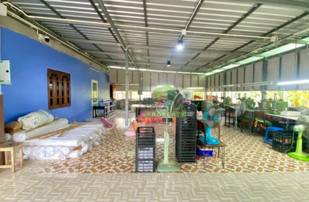 ประเภททรัพย์สิน : ที่ดินพร้อมสิ่งปลูกสร้าง บ้านเดี่ยว โรงงาน 2 ชั้น มี 6 ห้องนอน 5 ห้องน้ำ, 1 ห้องครัว, 5 แอร์, ที่จอดรถ, โรงงาน, คลังสินค้า