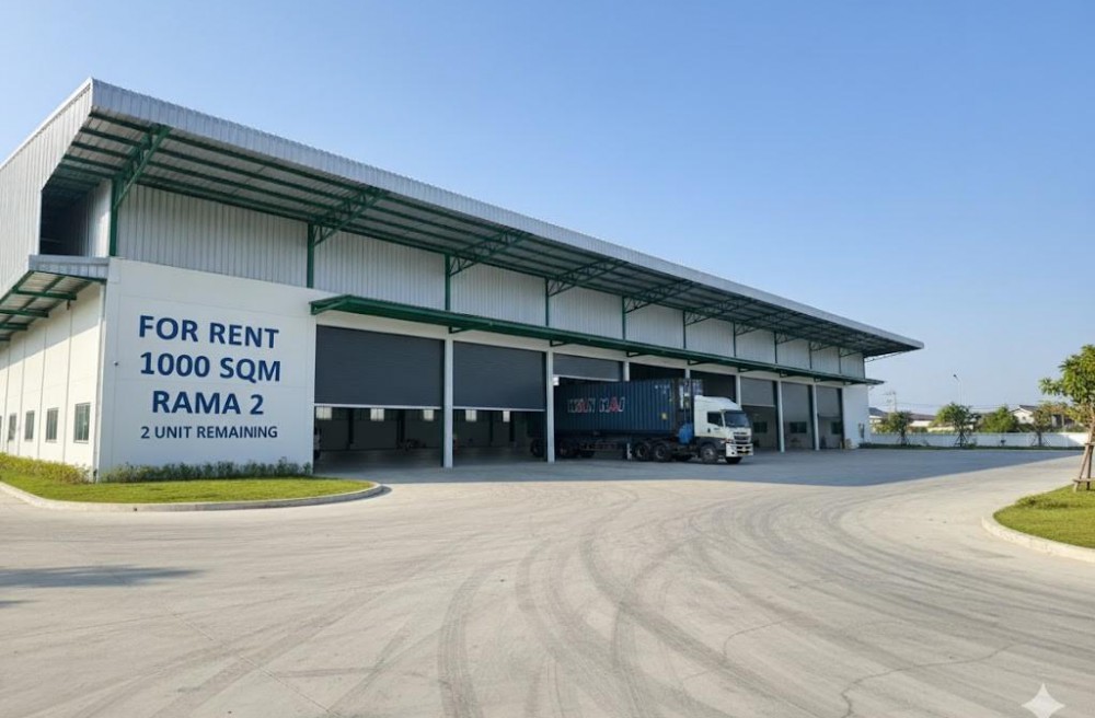 ให้เช่าโรงงานสร้างใหม่ 1 ไร่ (พื้นที่ใช้สอย 1,000 ตร.ม.) ทำเลพระราม 2 บางโทรัด ผังสีชมพู | ไฟฟ้า 3 เฟส | ขอ อย. ได้ | รถใหญ่เข้าออกสะดวก | เหลือเพียง 2 ยูน