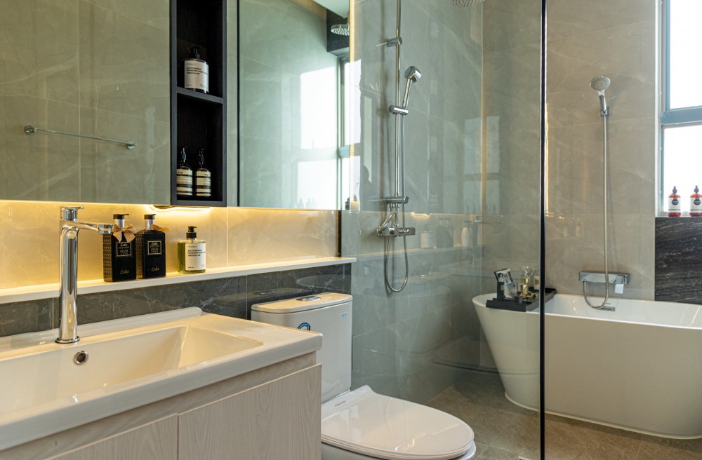 - ส่วนกลาง : สระว่ายน้ำ ฟิตเนส ซาวน่า โยคะ รปภ. 24 ชม.