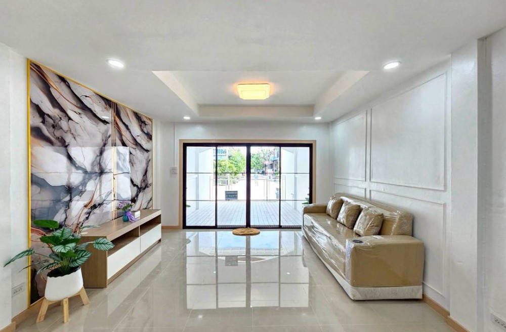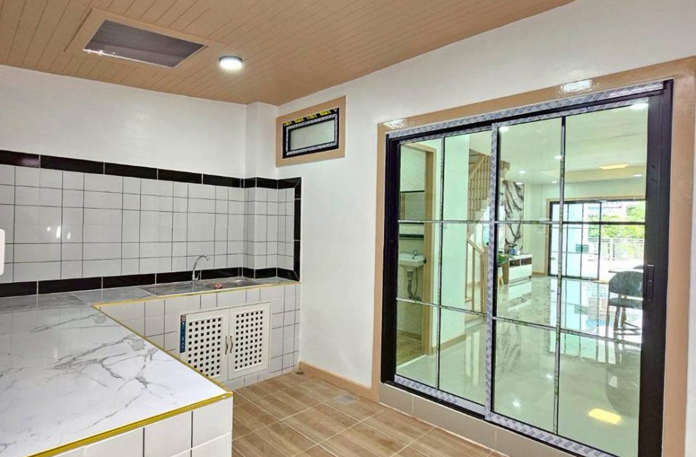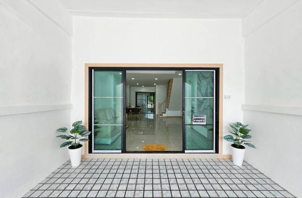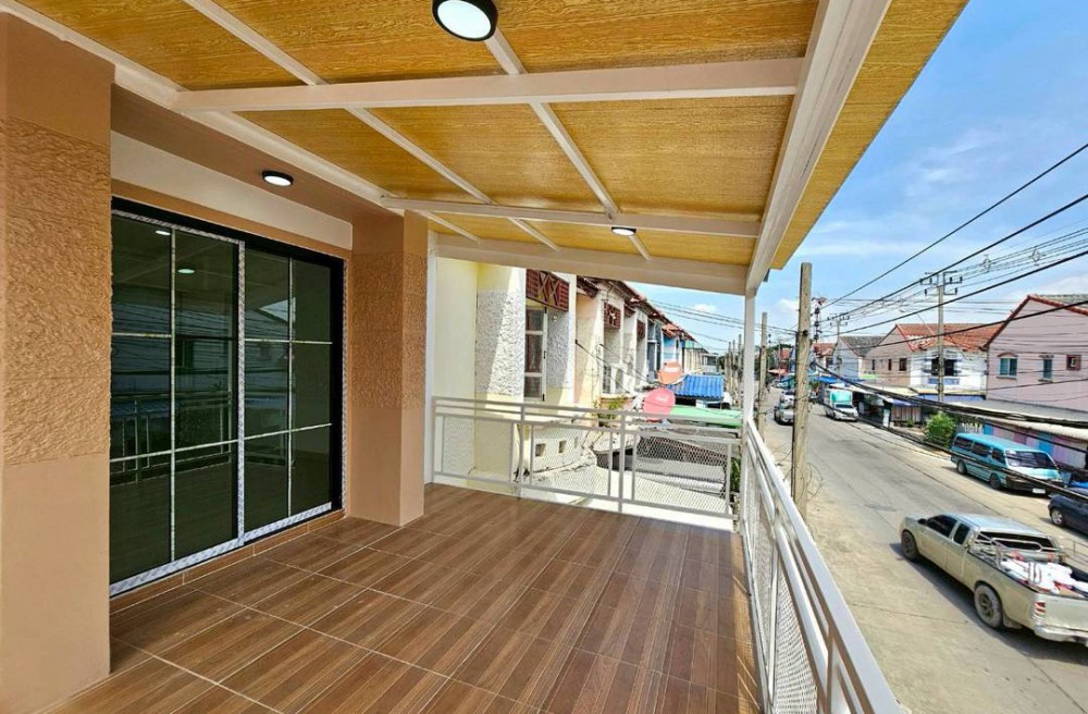 ต่อเติมครบ: มีเทอเรสด้านหน้าพร้อมมุงหลังคา ใช้งานได้เต็มพื้นที่